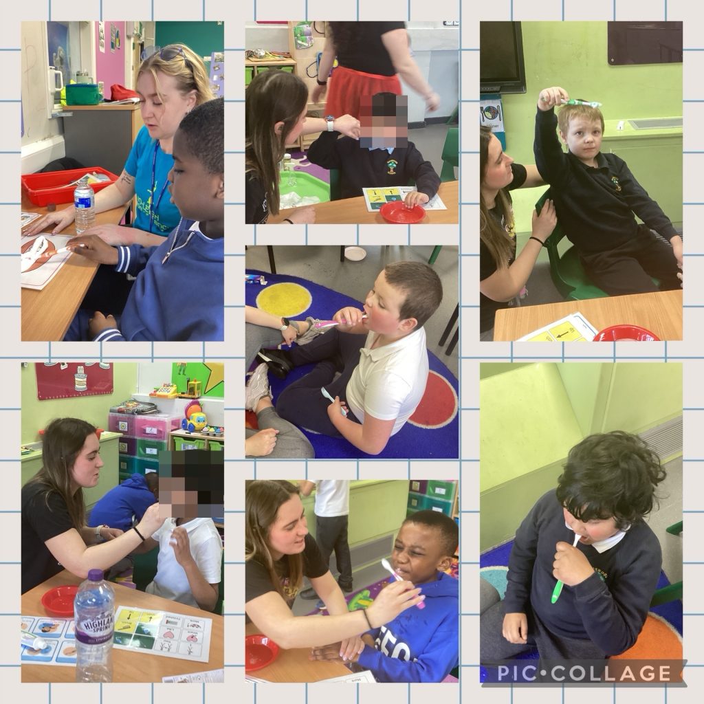 Today in Badgers we’ve been working on our teeth brushing skills in our PSED lesson. We all had a separate toothbrush with some minty tooth paste to clean our teeth to make them nice and shiny. As part of our PSED topic we are going to be learning how to keep our self clean. Next week we are going to be using flannels and soapy water to wash our faces😁