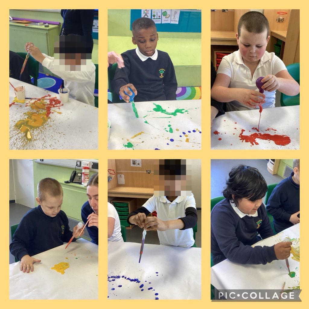 We’ve been working on our pincher grasp and our fine motor skills through art. We lay down a big piece of paper so we didn’t make a mess of the table. We all chose which colour we wanted to use. We then, using the peppetts, made pretty patterns. By using the pippettes, it helps us build our grasp, this can help some of us with our pen holding. Well Done boys, we are all so proud of you!!!!😆