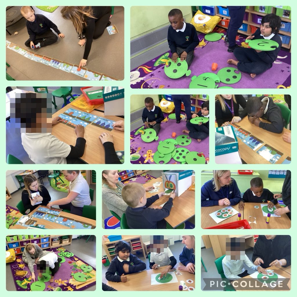 The week we have been doing lots of work around our topic. We’ve been using pictures to order the days and what that very hungry caterpillar ate. We also been sorting all the fruit and yummy sweet treat he ate into different days. This is helping us remember the story even after listening and watching it. Some of us were even able to complete the puzzle of a caterpillar🦋🐛
