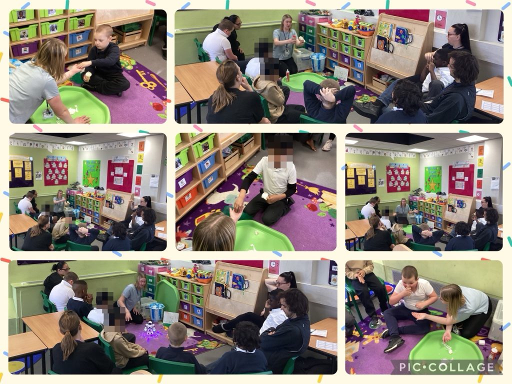 This week in bucket we have done so well engage in all stages of bucket. We watched Zoe with some of our favourite flashing and spinning toys. Then we watched her create her own icecream with whipped cream and sprinkles but unfortunately she dropped it, Silly Zoe! After she then chose some of us to have a turn, some of us were copying Zoe and dropping our ice cream but some of us were too busy enjoying the cream and sprinkled. Well Done boys🎉😋