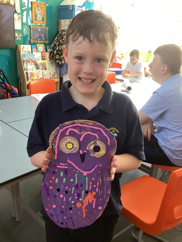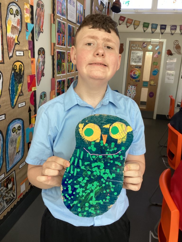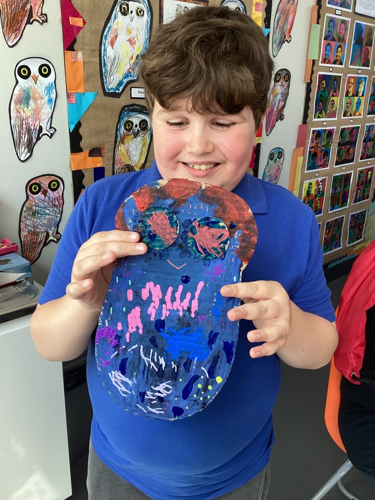 Our artwork inspired by Brian Wildsmith also continued this week, in our art session with Dan. We added finer details to our 3D owl sculptures using acrylic pens, focusing on pattern, line work, and colour. We all showed great care and creativity, and we’re looking forward to the final touches next week when we will use a range of craft materials to add texture.