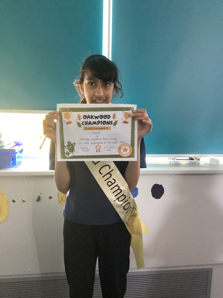 Our Champion, this week, is Baneet! Baneet wowed her adults, peers and parents, during the Upper Primary and Secondary talent show. Baneet showed amazing confidence whilst singing and dancing in front of a large audience – what amazing bravery!