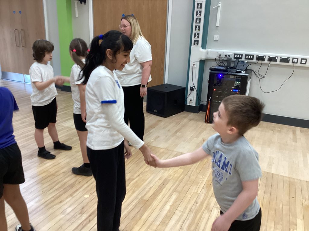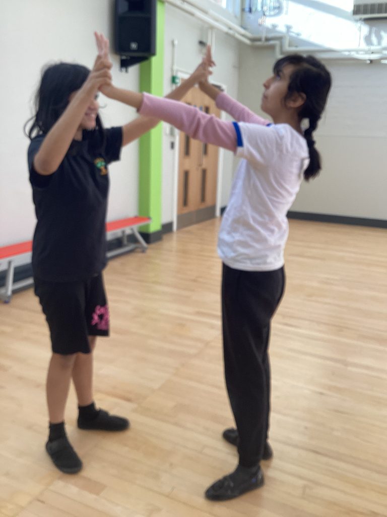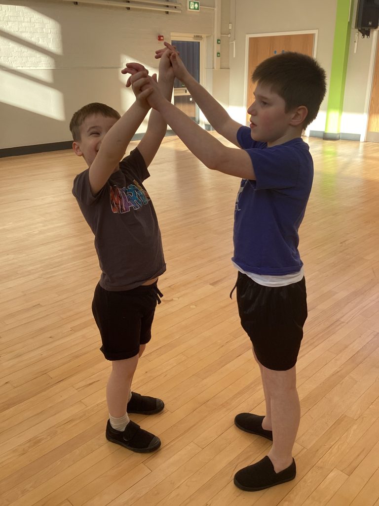 We have been working on applying the basic movements from traditional British folk dancing. Yesterday, we worked on the second section, within our dance. We imitated a range of basic greeting models, alongside our partner. We started by waving to a partner, then shaking a partner’s hand and finally turning whilst holding a partner’s shoulders. Once we had mastered these movements, we were able to link the movements together, making our own simple sequence. We did thus so well and ensured we listened and responded to the music appropriately.