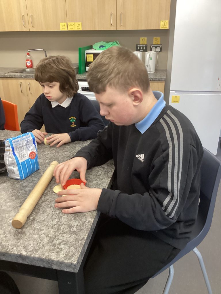 On Friday, we celebrated Red Nose Day. We came to school dressed in our red clothing. We also enjoyed tucking into our own red nose biscuits. We mixed and rolled the dough before decorating with bright red raspberry jam.
