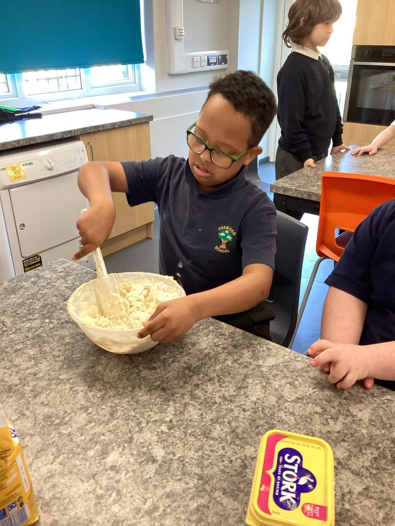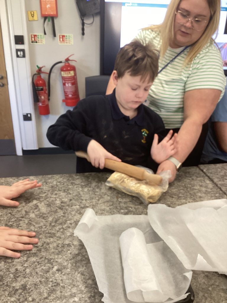 Easter preparations have begun, this week, in Fox class. We have been exploring the Easter story and the key events that take place. We developed our understanding of the significance of the cross. This led us to baking hot cross buns. We decided to take a twist on the traditional hot cross buns, instead adding apple and chocolate. We measured, mixed and kneaded our ingredients to make a squidgy dough. This was left and when we returned the yeast had helped the dough to grow!
