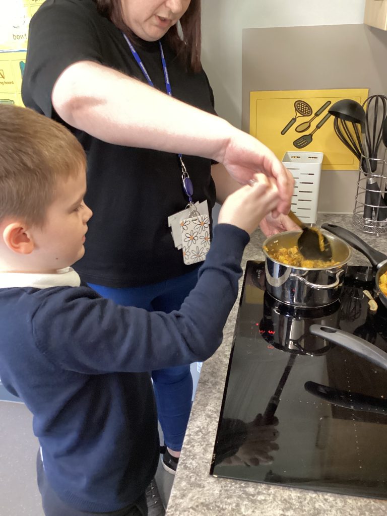 Our cooking session, this week was also linked with our Chinese New Year celebrations. We applied our chopping, frying and boiling techniques to make our own quorn chow main. The smell from the cooking room was almost as good as it tasted – YUM!