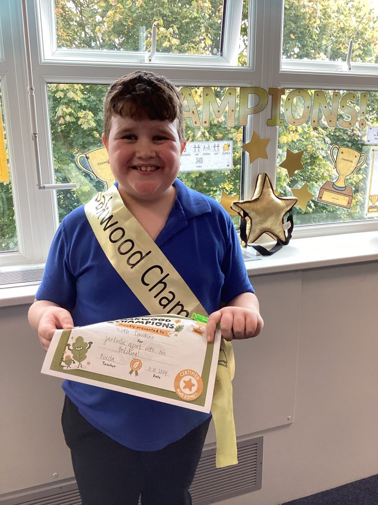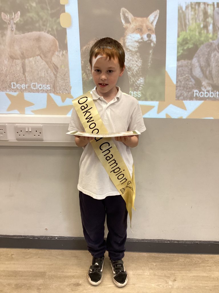Our champion in Fox class, this week, is Oakley! Oakley started our school on Wednesday and has settled into school life beautifully. We all know how tricky it can be when doing something new but Oakley has coped so well. He has been working really hard to follow our class routine and develop relationships with his new peers and adults! Well done Oakley! We are all so proud of you.