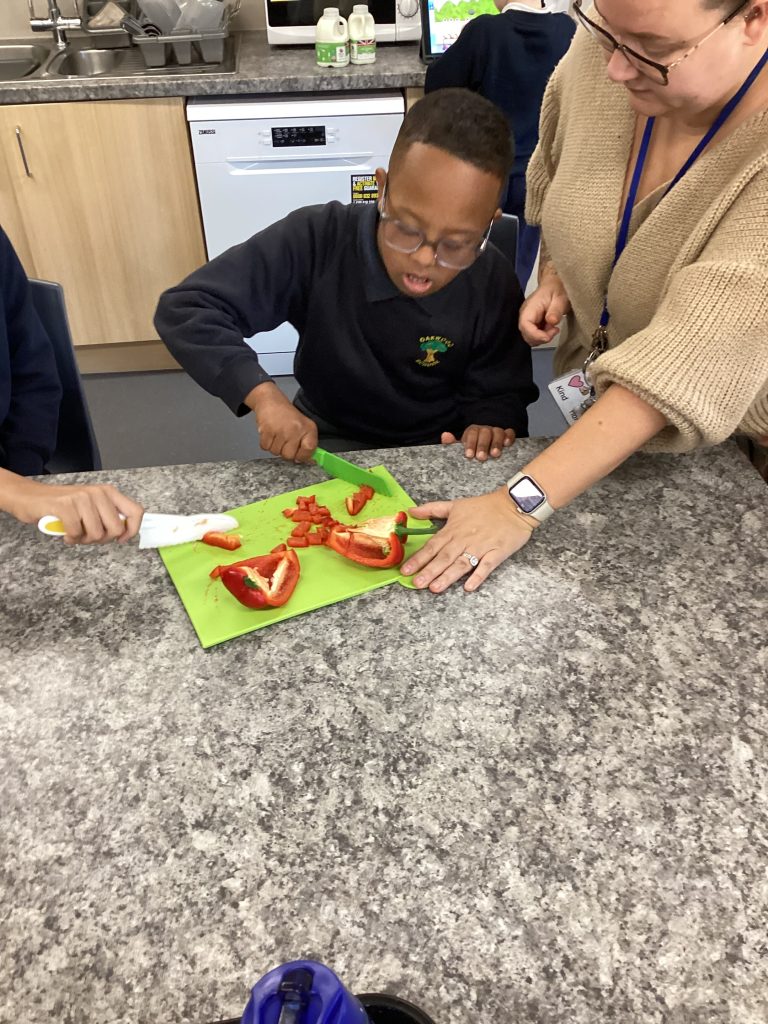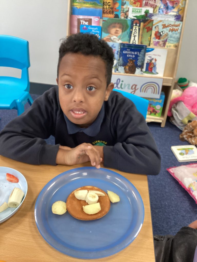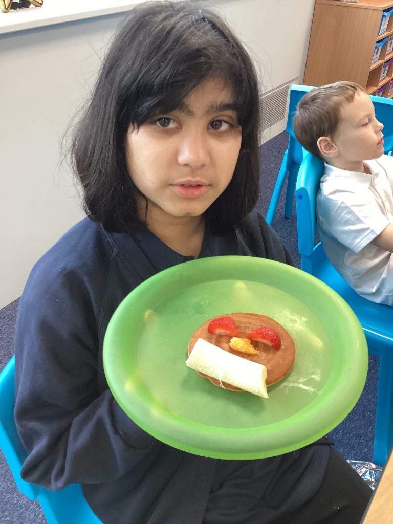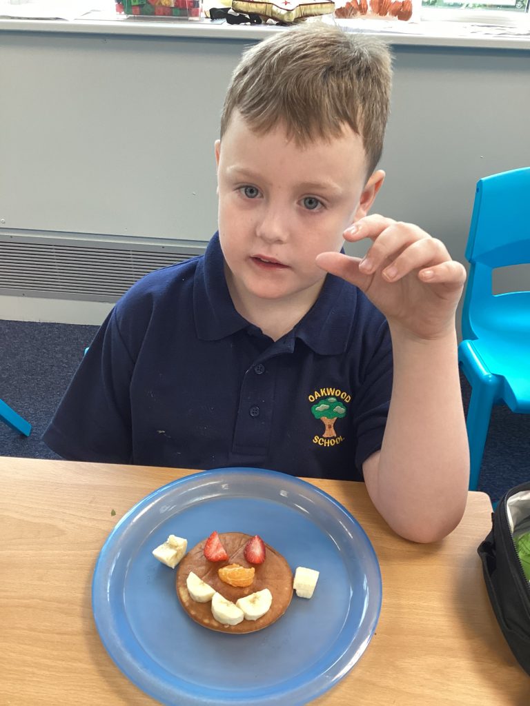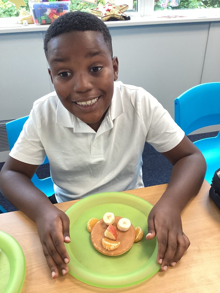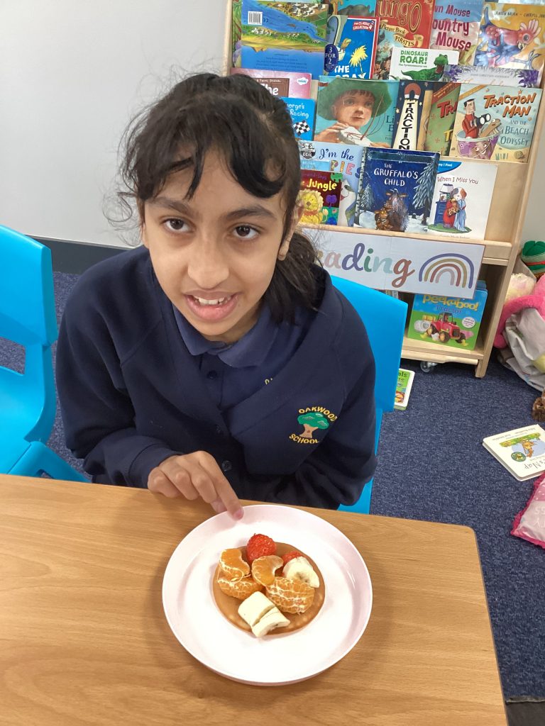 During our cooking session, the children have revisited how to peel and chop a range of fruits. We used these skills to carefully chop the fruit into different shapes to replicate the different parts of our face. Have a look at some of our funny faces!