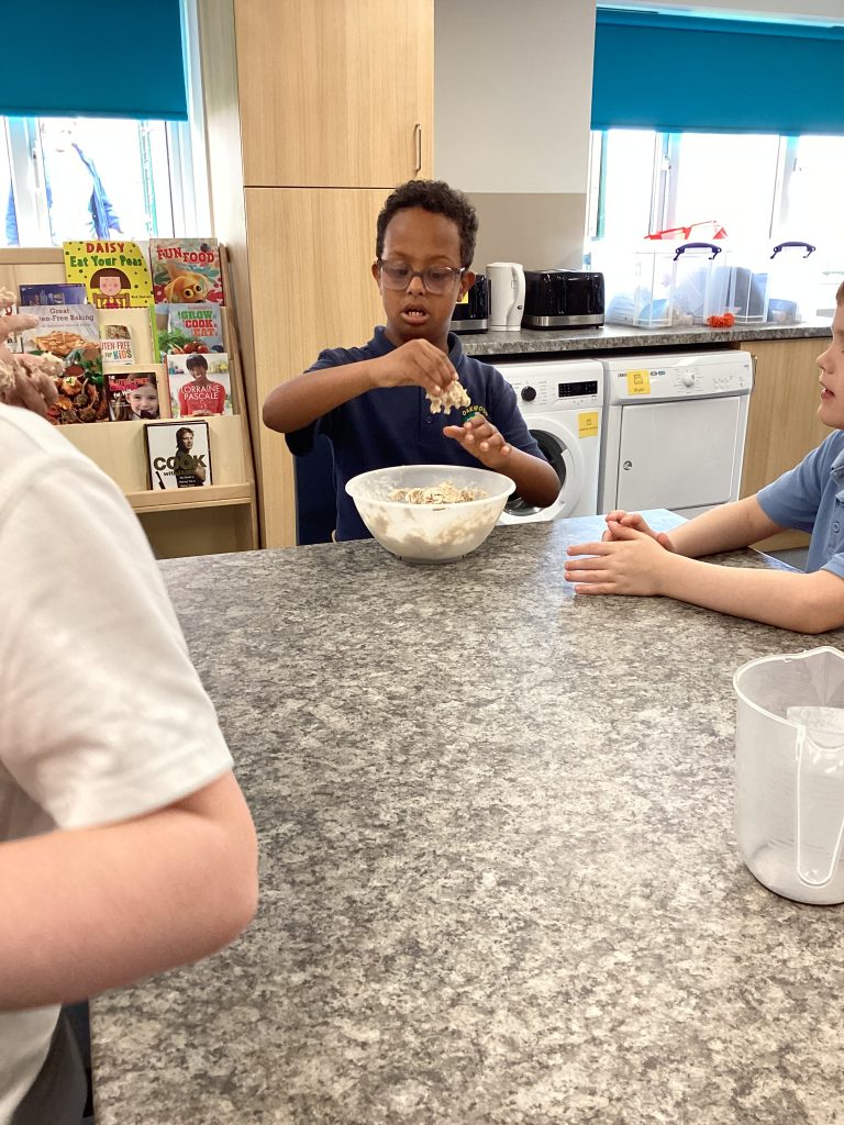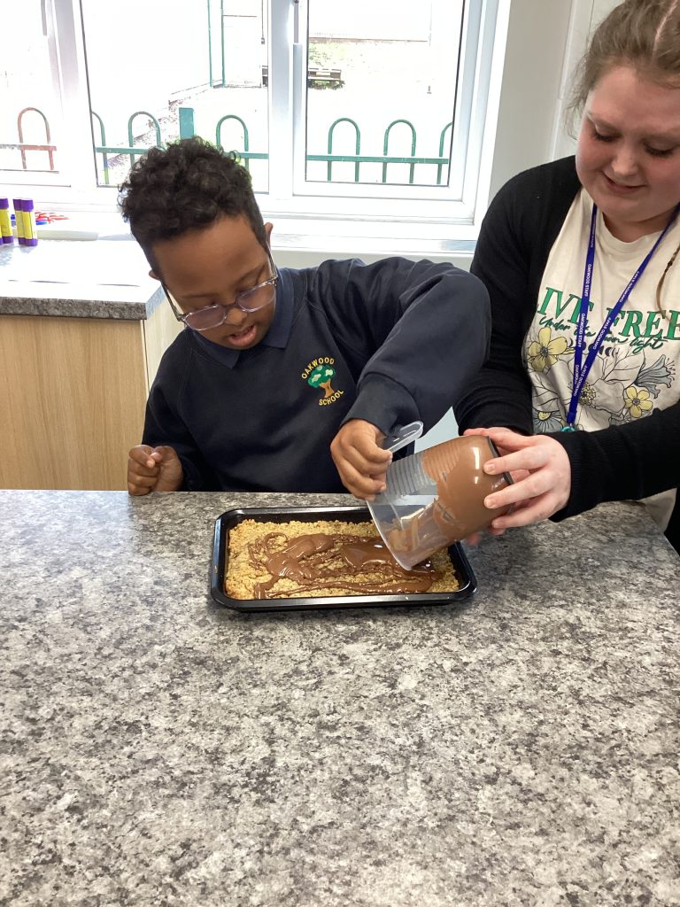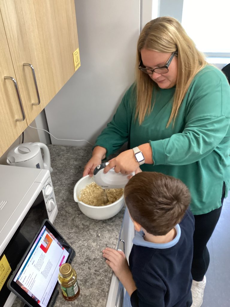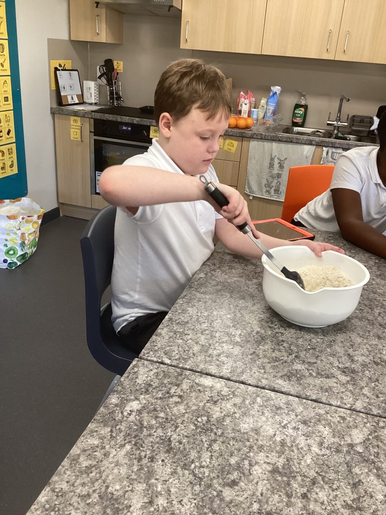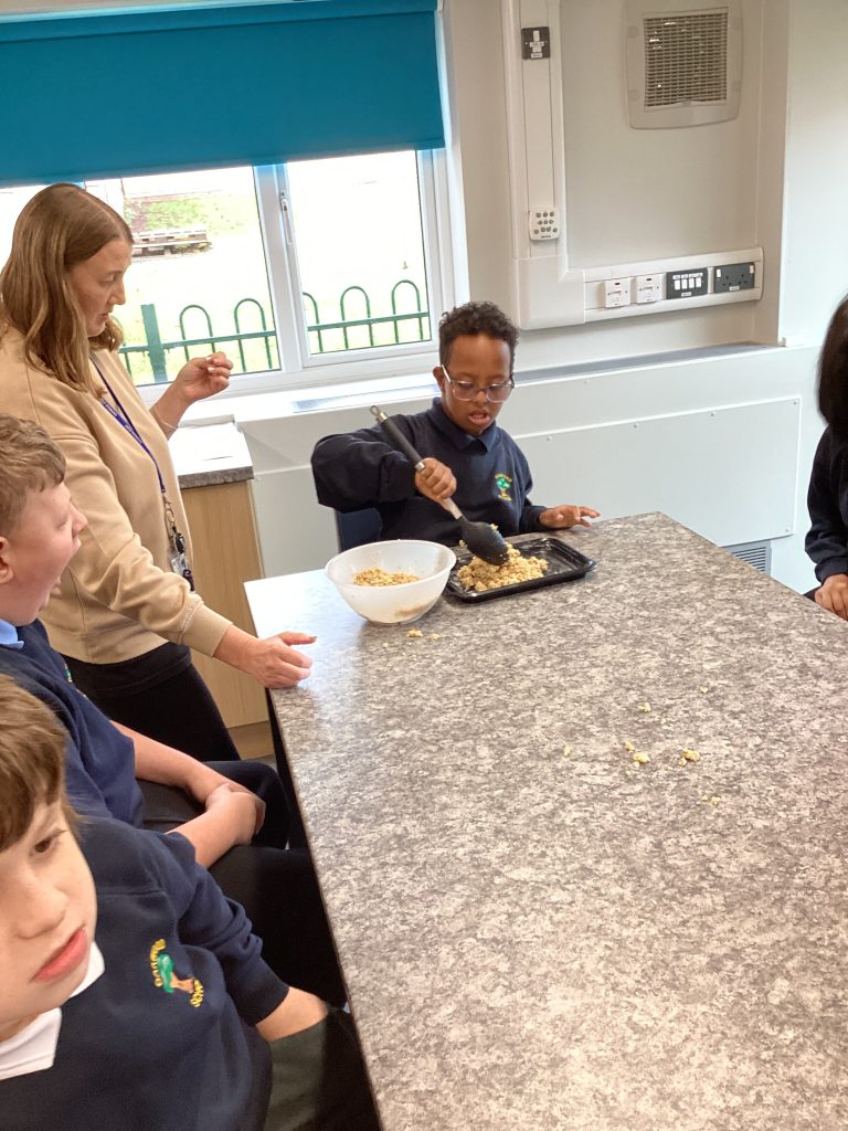 This week, during our cooking session, we have create sticky flapjack bricks, linked to our new story, ‘The Three Little Pigs’. We had to follow instructions, measure ingredients and use a range of cooking utensils.