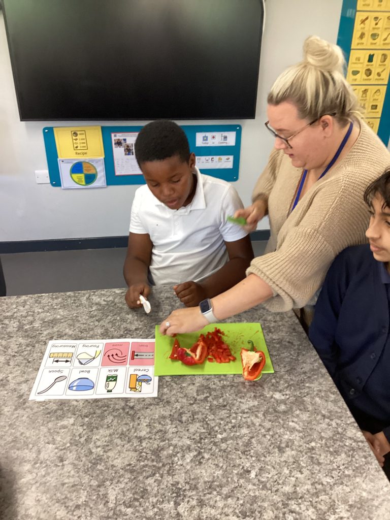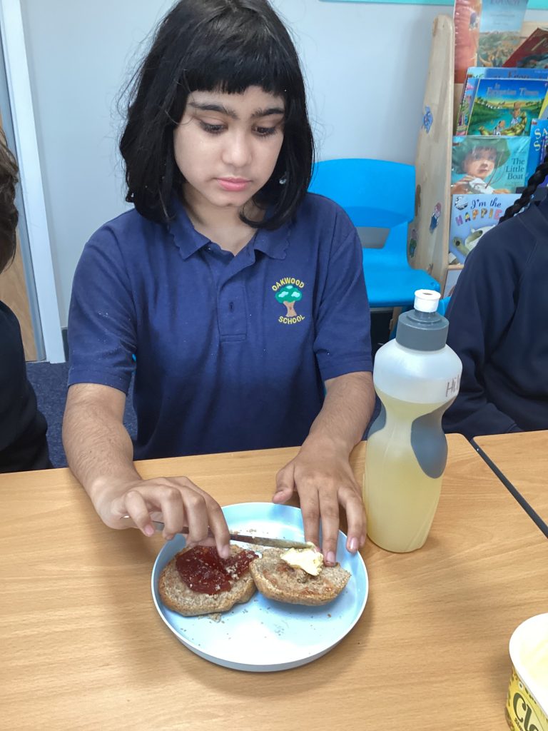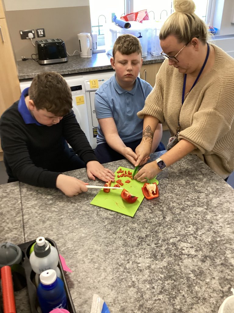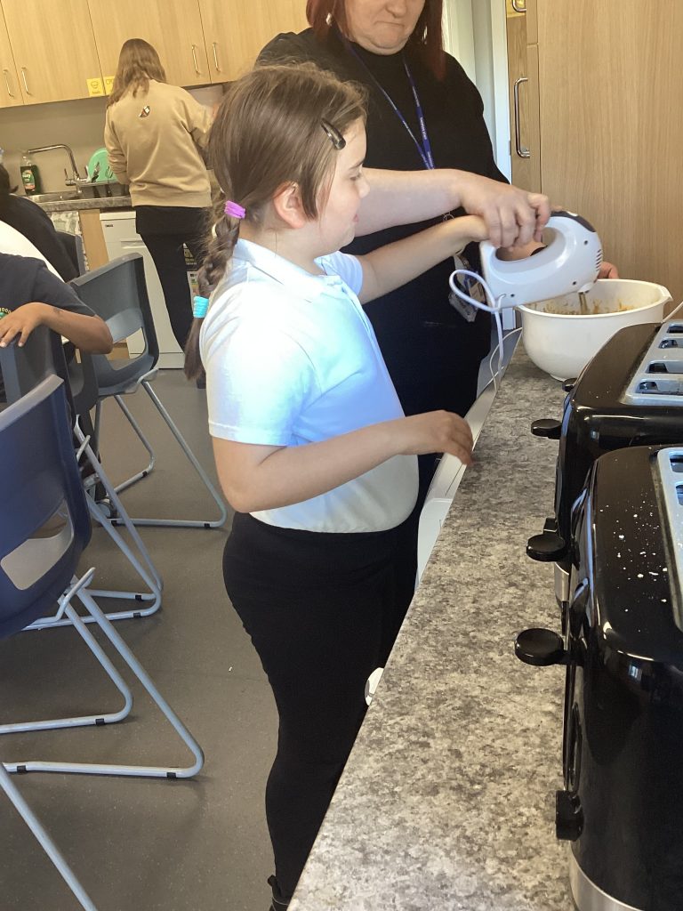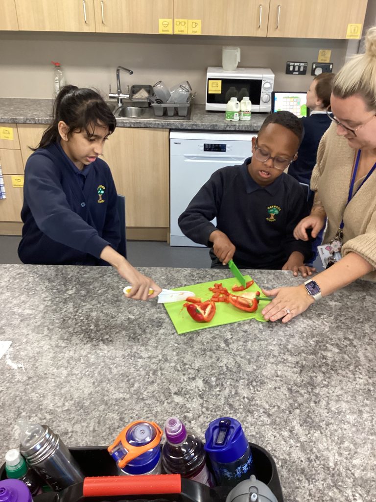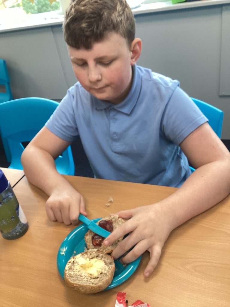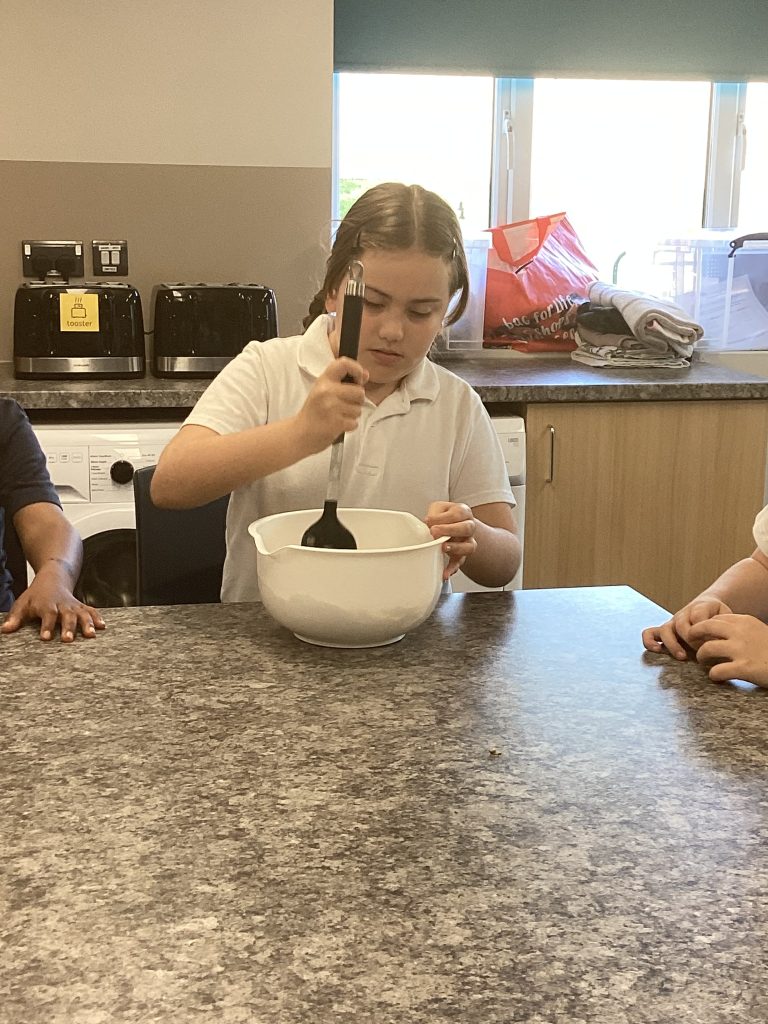 Linked with our Harvest learning, we have used vegetables – peppers and sweetcorn, to create savoury muffins during our cooking session. We chopped, poured and mixed the ingredients together before watching them rise in the oven. They were truly delicious!