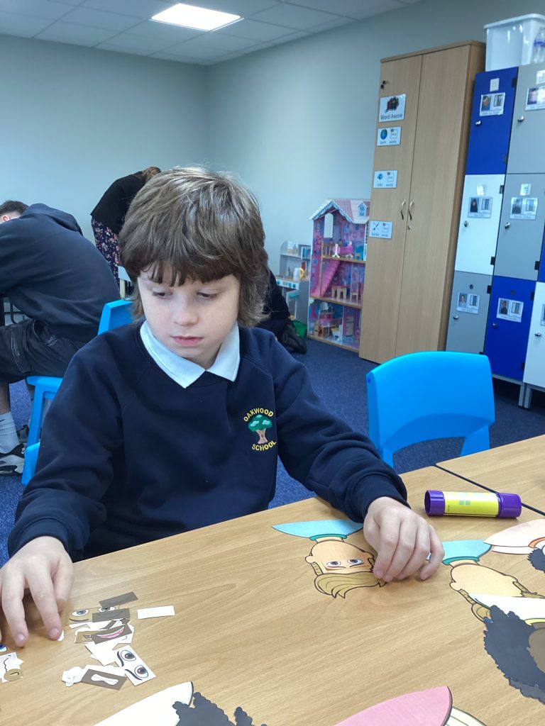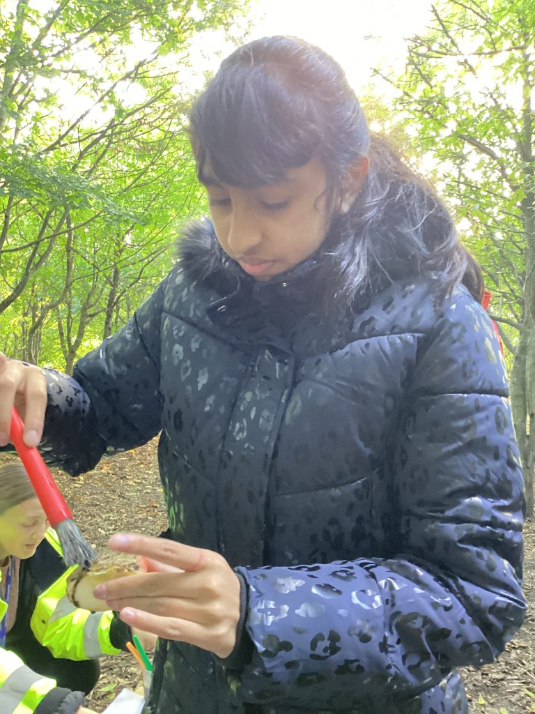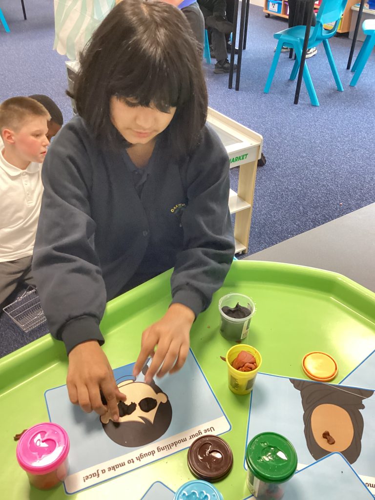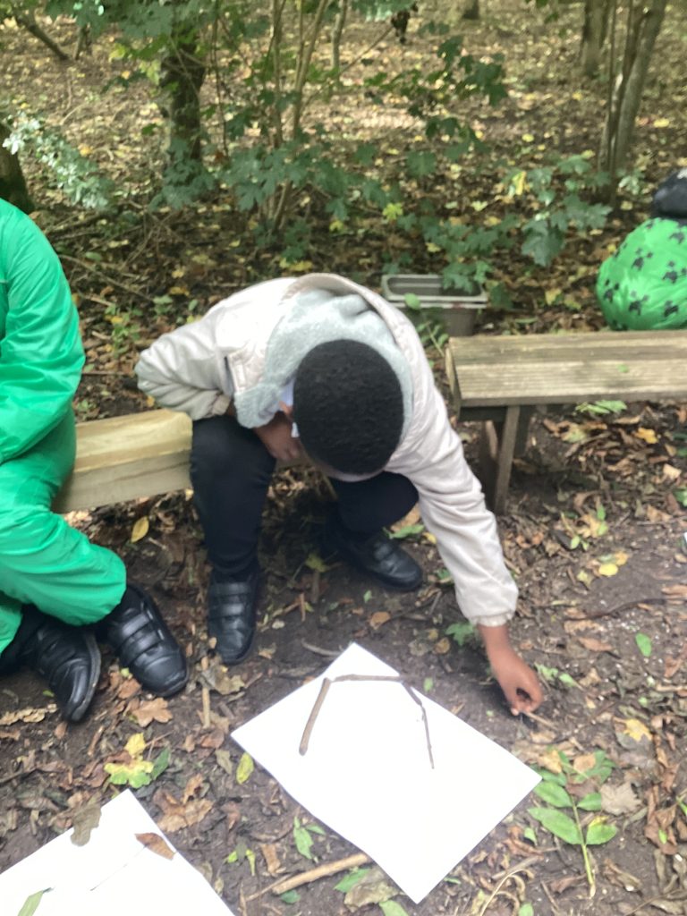 On Monday, we explored the forest area in our first woodland session. We continued to explore ‘All About Me’ by collecting natural materials such as leaves, twigs, bark and pebbles to create self-portraits. Again, we thought about what features we needed to create our faces and where they should be placed. Have a look at our super creations!