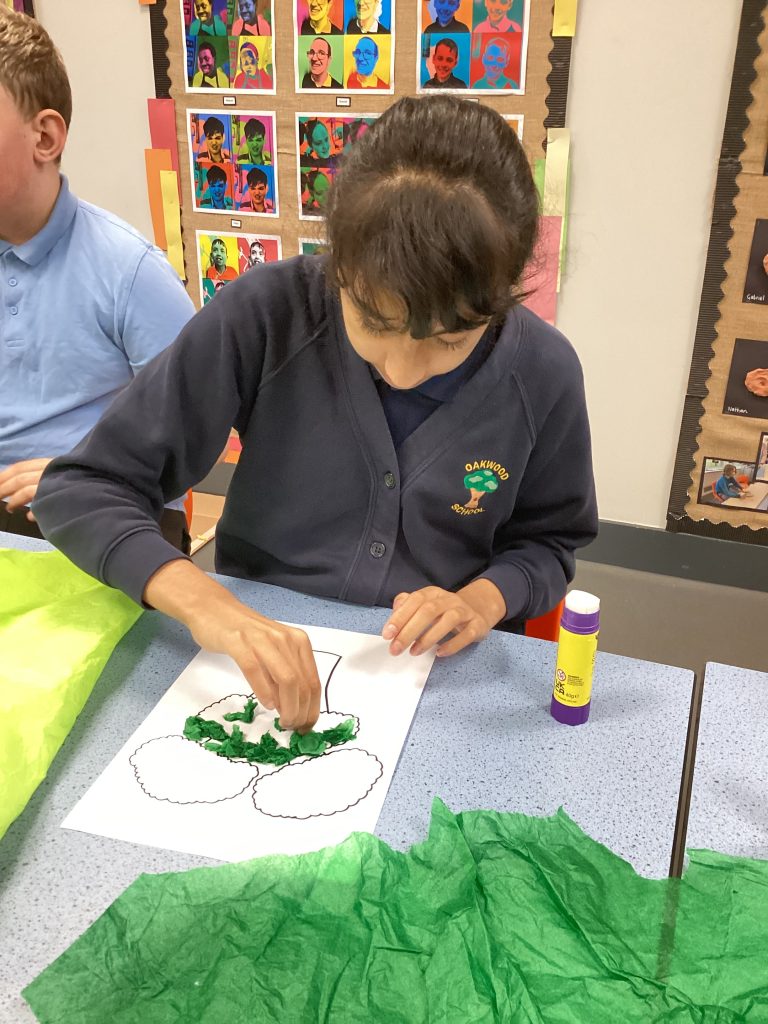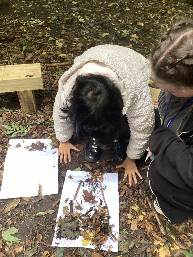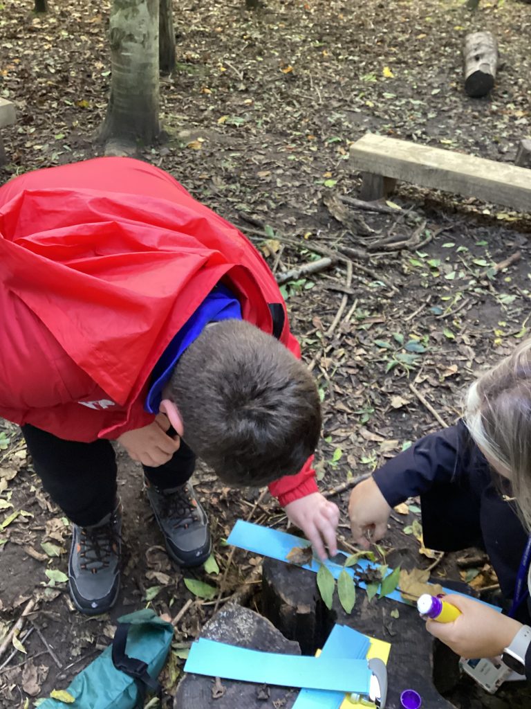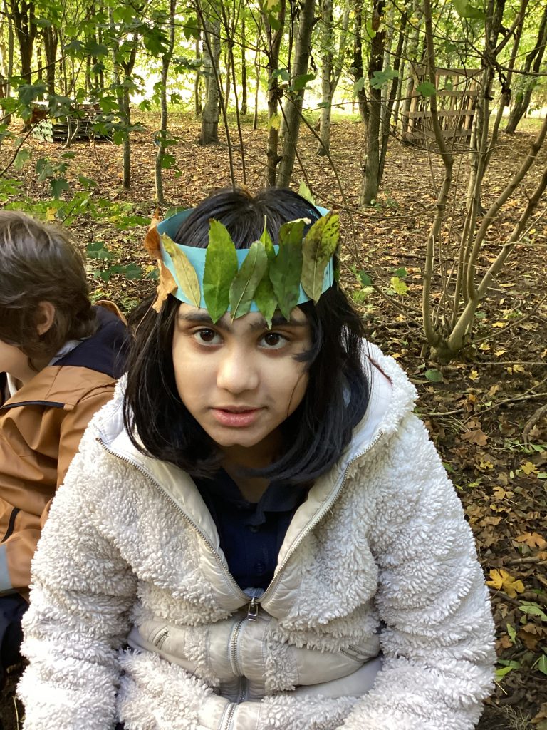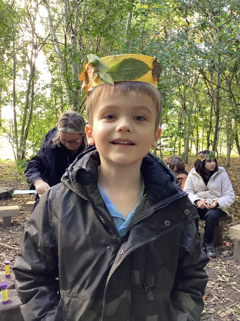 During our woodland adventures, this week, we have started to think about the autumnal changes that are happening. We collected a range of woodland materials to make our own autumn crowns. We noticed that some leaves were green, some were orange and some were crispy brown.