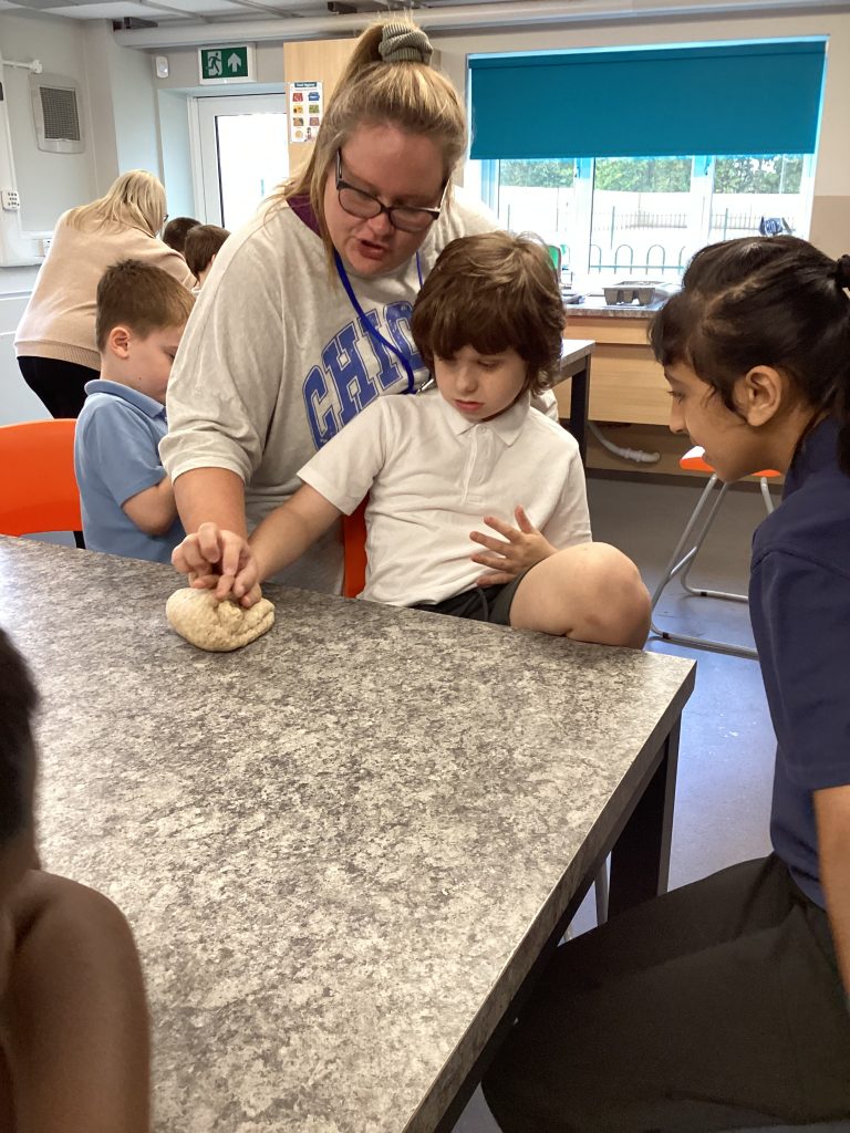 Over the next few weeks, we are going to be learning about Harvest. To begin our celebrations, we have learnt about wheat. We have discussed where wheat comes from and how it is used to make flour. Have a look at our photos, from our cooking session, this week, where we have made our own bread! It was amazing watching the yeast help our dough to rise. We have even learnt a new cooking technique – kneading.