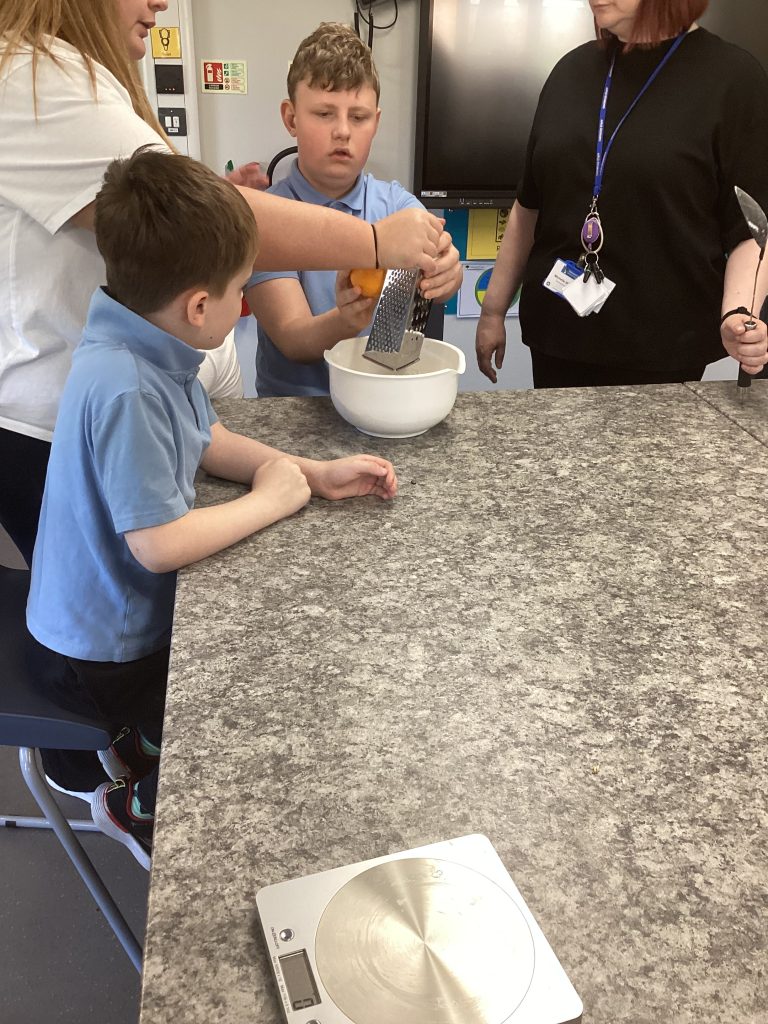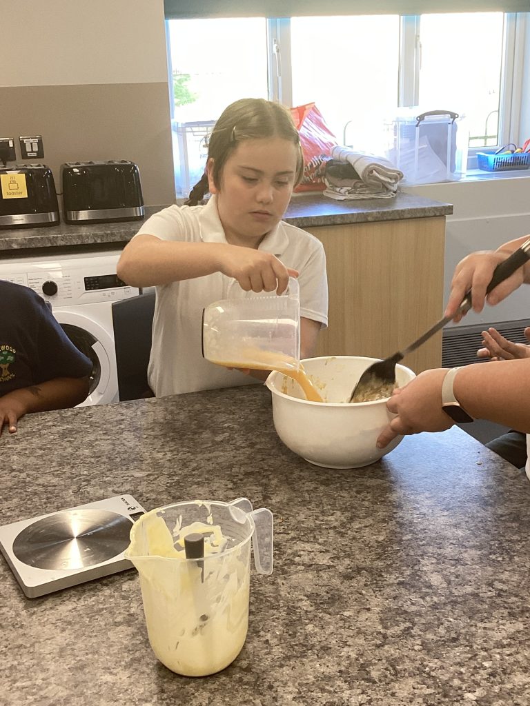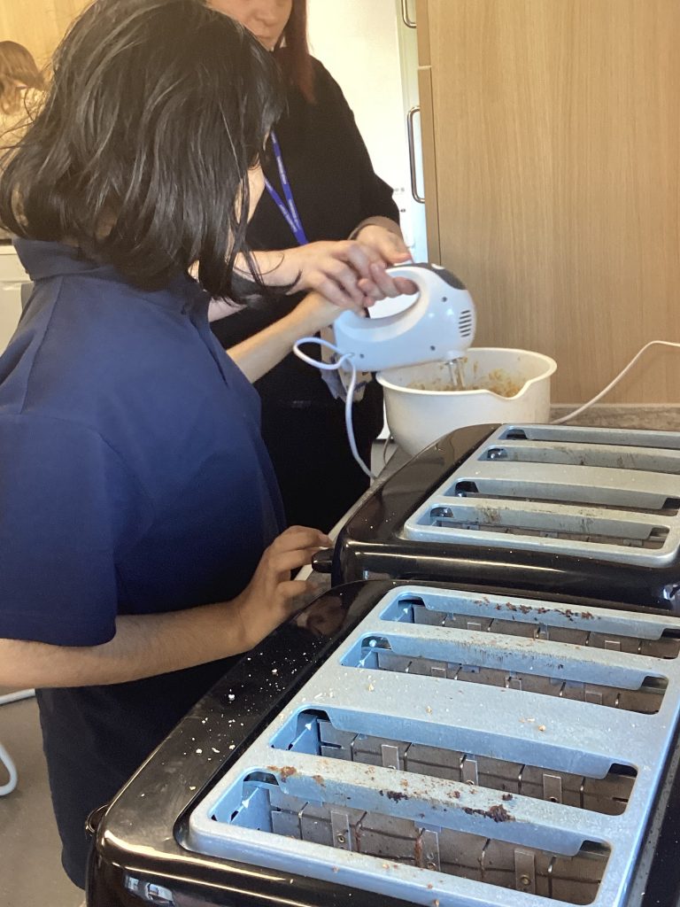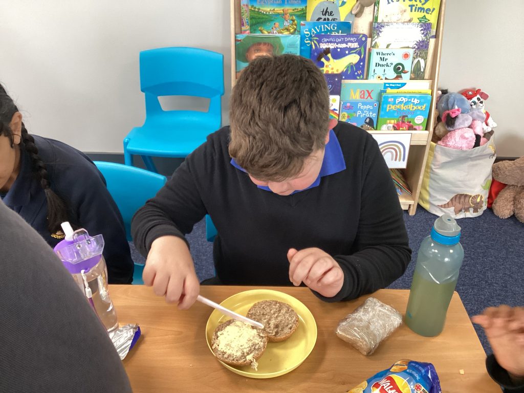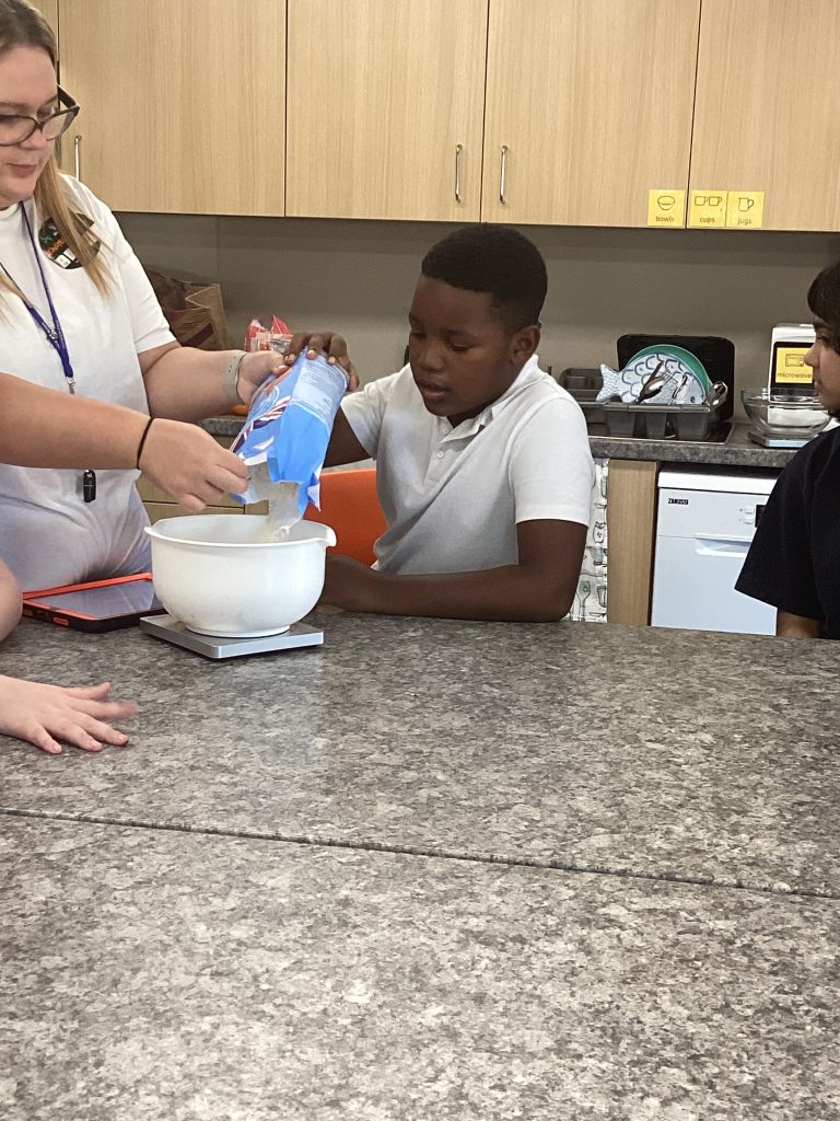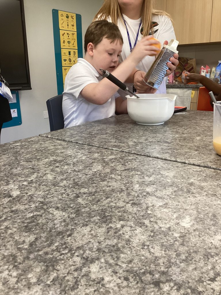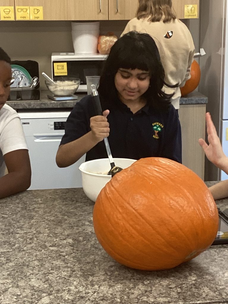 This week, during our cooking session, we have used another harvest fruit to make a delicious sweet treat. We used pumpkins to bake pumpkin cake. Working together, we measured, mixed, chopped and stirred the ingredients before placing into the oven. Kate, Michelle and Dan, our art teacher, all commented how wonderful our cake tasted!