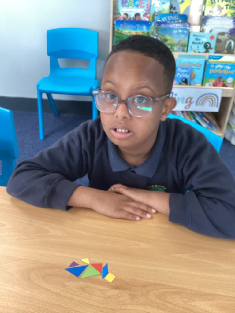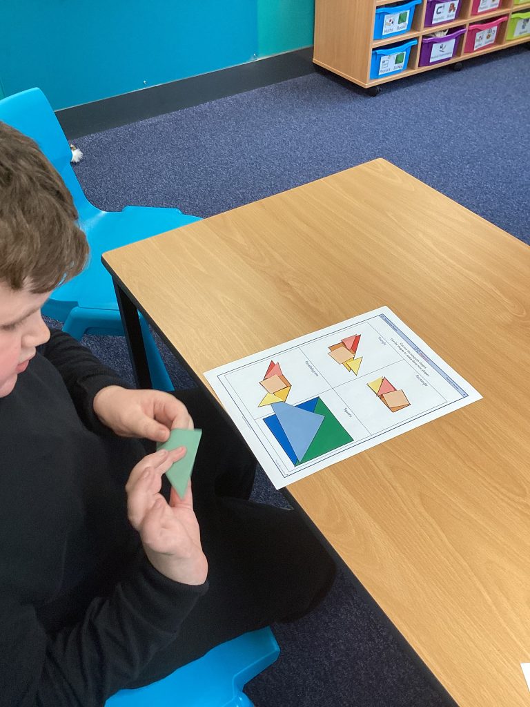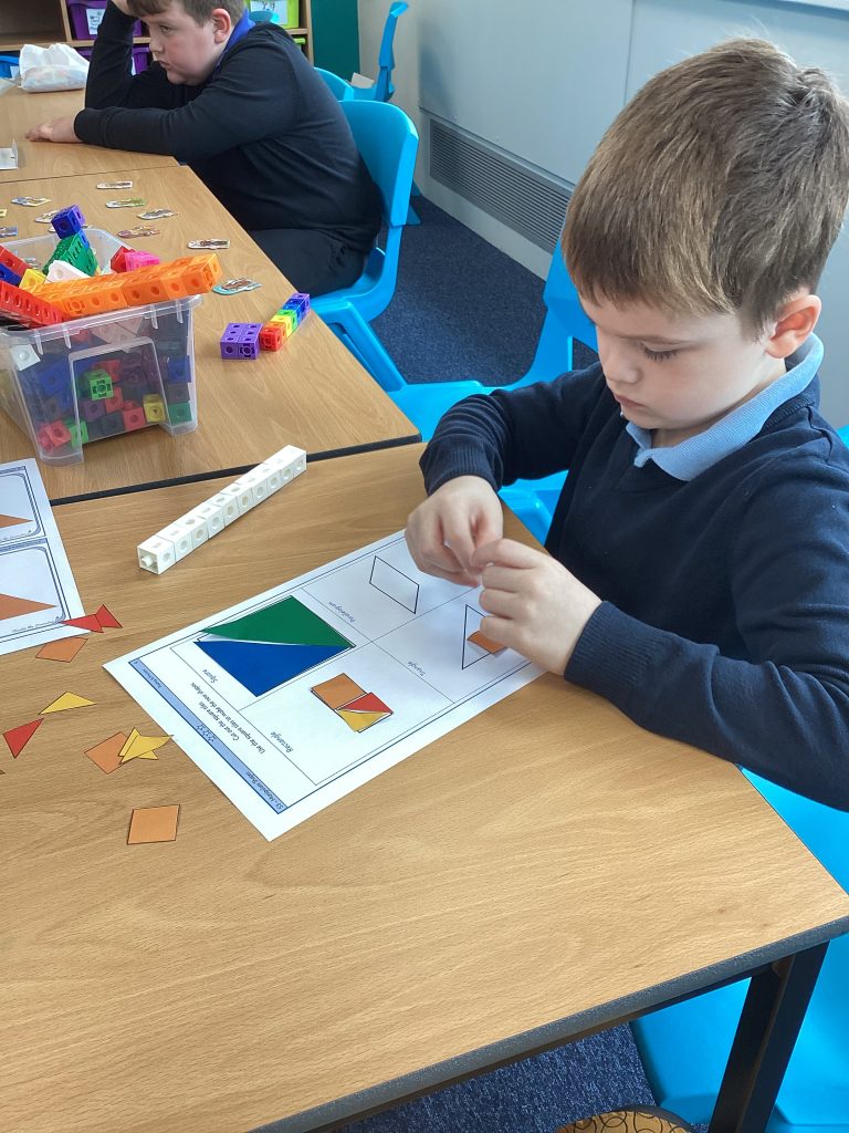 In Maths, we have been learning about manipulating shapes by rotating. We know that rotate means the same as turn. Sometimes shapes need to be rotated in order to fit perfectly. We have been completing lots of tangram puzzles by selecting and rotating different shapes.
