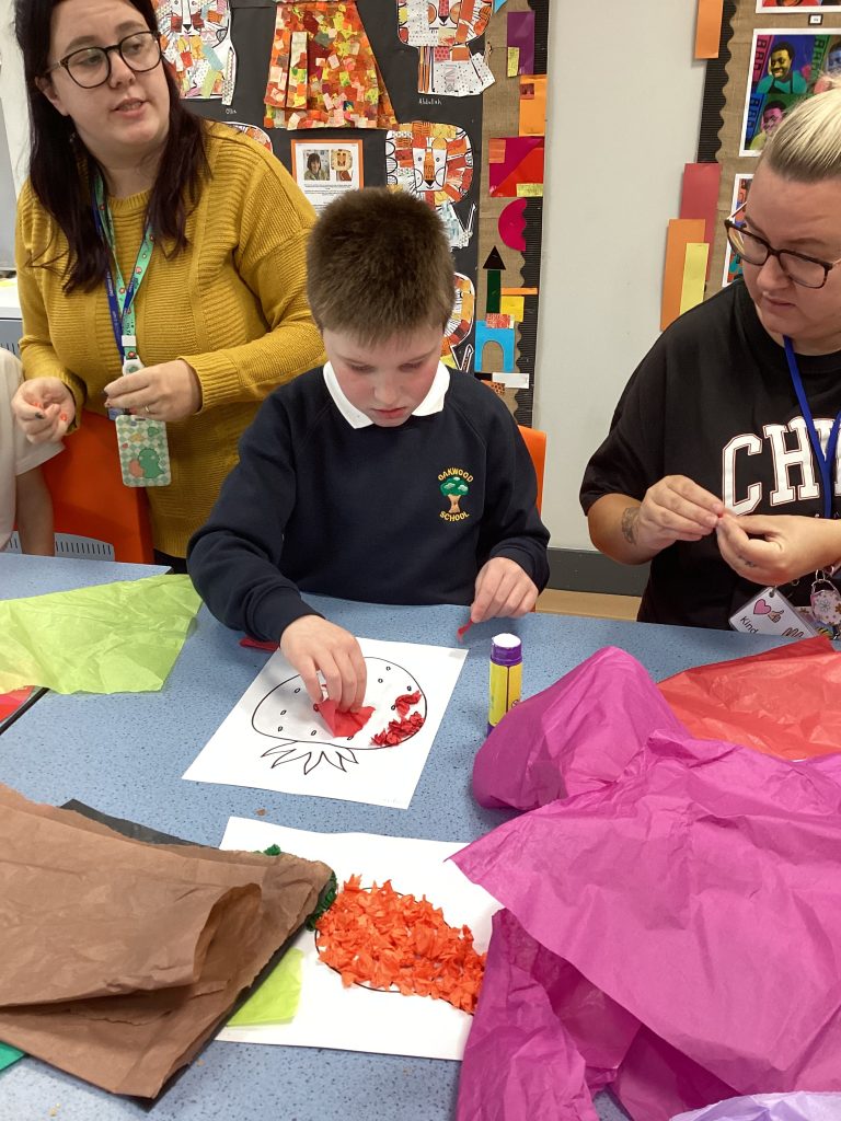 We have been learning about the different signs of Autumn, this week. We know that during the Autumn months, September, October and November the leaves on the trees begin to change colour. This is because there are reduced periods of sunlight. We have also learnt that the weather changes as we move from Summer to Autumn. We have enjoyed engaging in a variety of Autumn crafts!