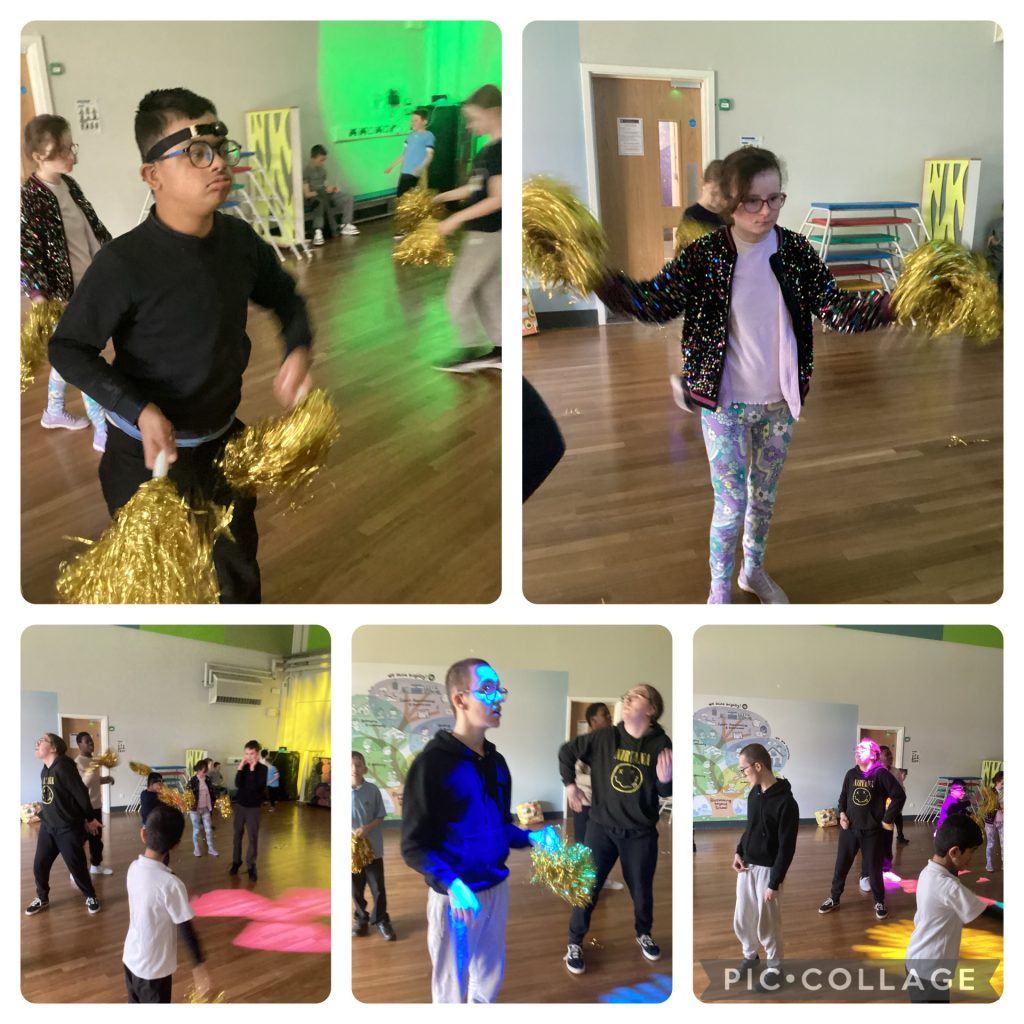 We had a lovely time joining in with dance day on Friday. We joined Rushall Primary School Year 6 pupils to learn a line Dance routine. Caroline from Rushall taught us how to do the dance and then we joined in with the routine. After that it was dance party time and we used the Pom poms and ribbons to dance around. We also loved the disco lights and party music.