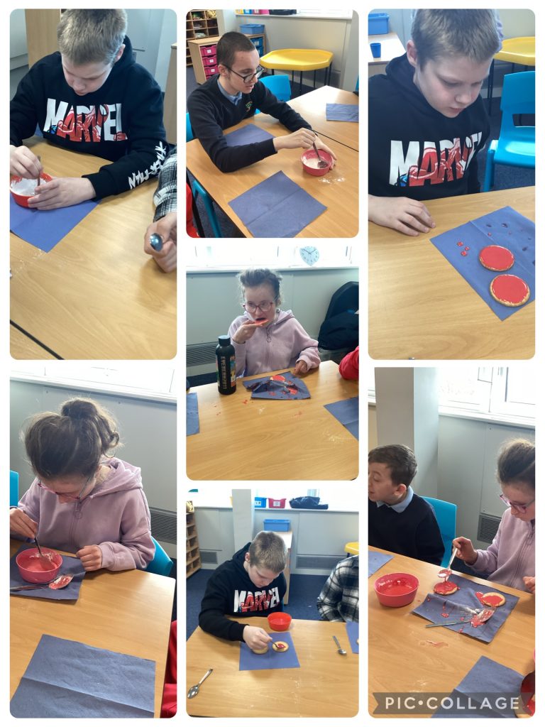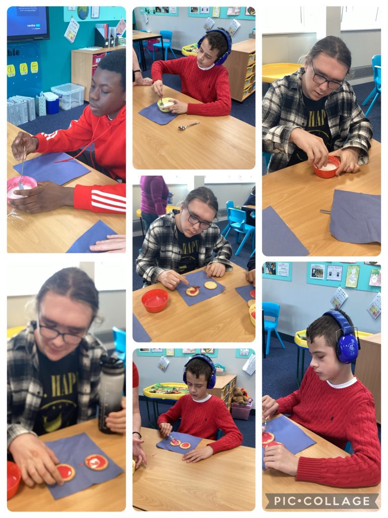 We then decorated some biscuits in red icing to make our own red noses in iced biscuits! We then ate them for our snack. Yummy!