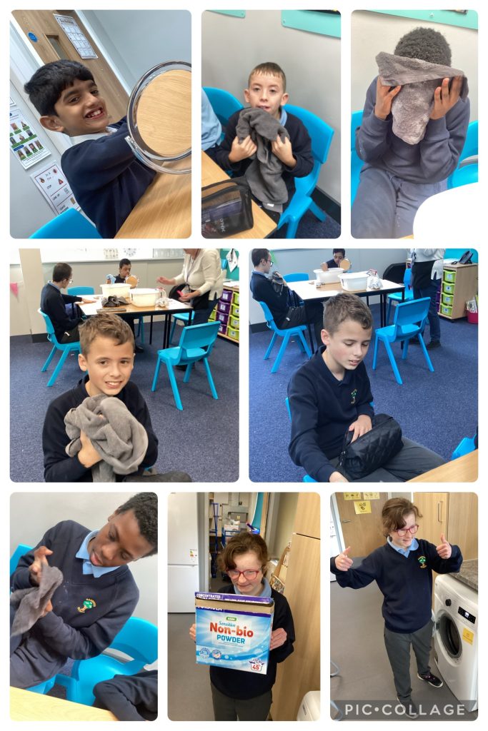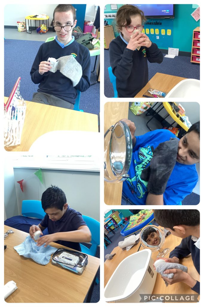 As each week goes by we are working on the independence of face washing. Each week pupils are requiring less support as they remember what they did the previous week. Then, at the end of the sssion, we collect the towels and flannels and put them in the washing machine. We are teaching pupils to use a washing machine so soon pupils will be able to wash their own clothes are home!! π
