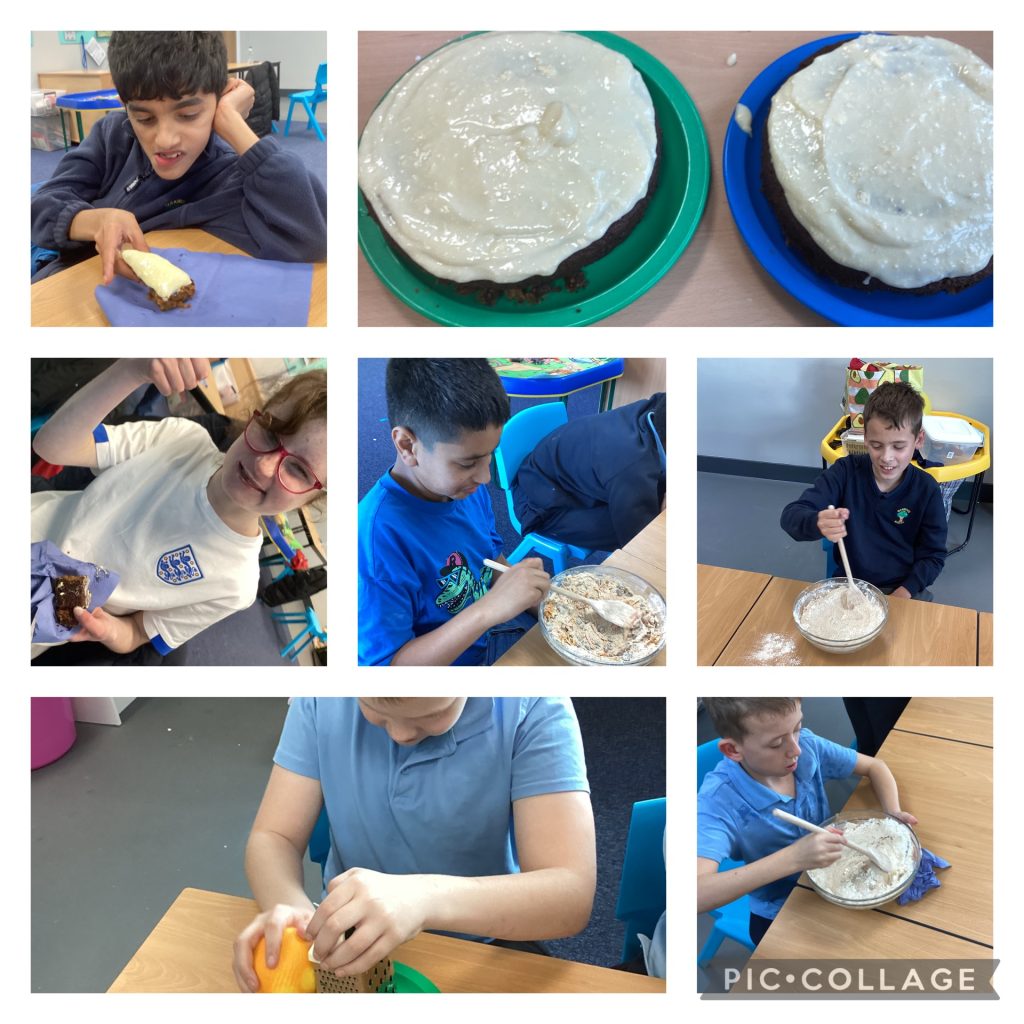 During our class community visit we looked at the different items in the shops that grow and are then harvested. We also bought some ingredients to make a pumpkin cake. It used lots of different ingredients and we were helped by our in class master chefs, Delena and Tracy! It was delicious!