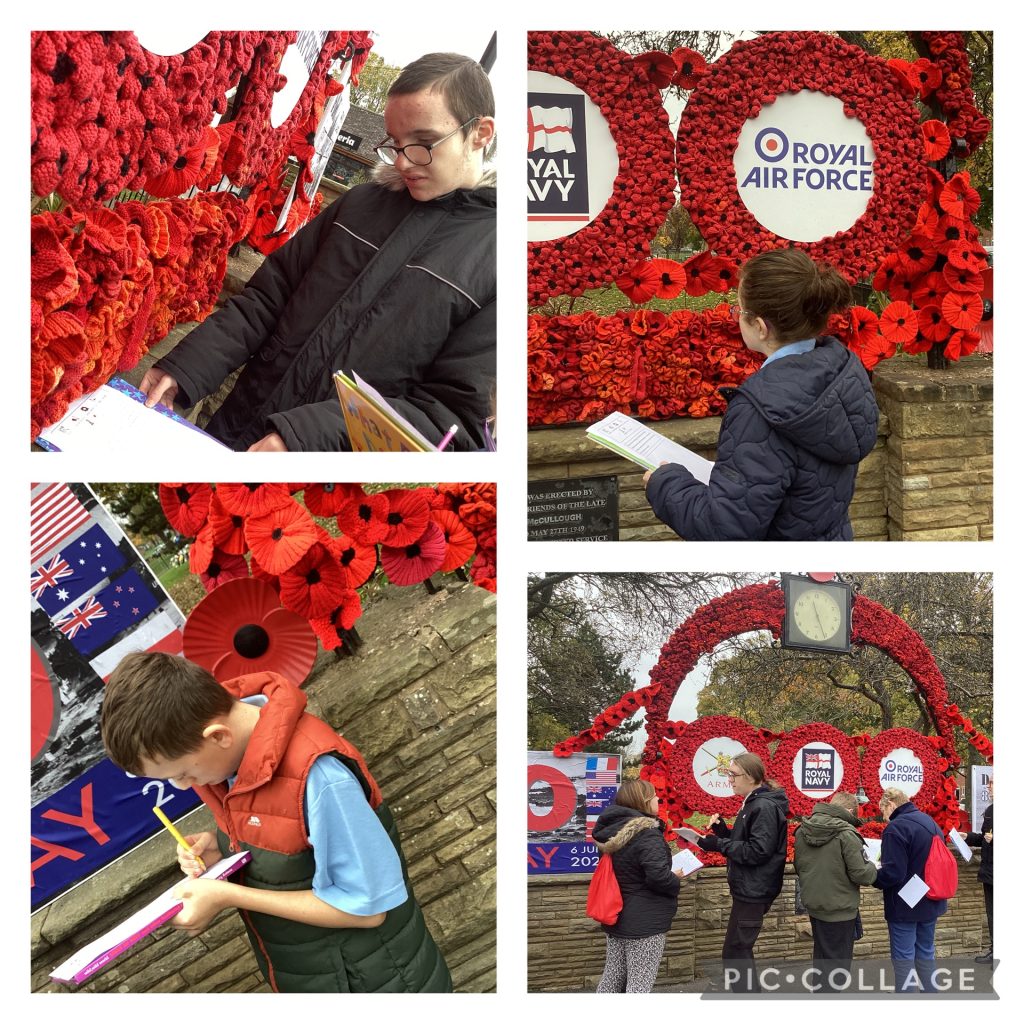 At 11 oβclock on the 11th day of the 11th month we remember all the soldier past and present that have fought in wars around the world. We visited Pelsall to look at the poppy display and to see the wreaths laid at the cenotaph. In class, we made a wreath to take with us to add to the cenotaph.