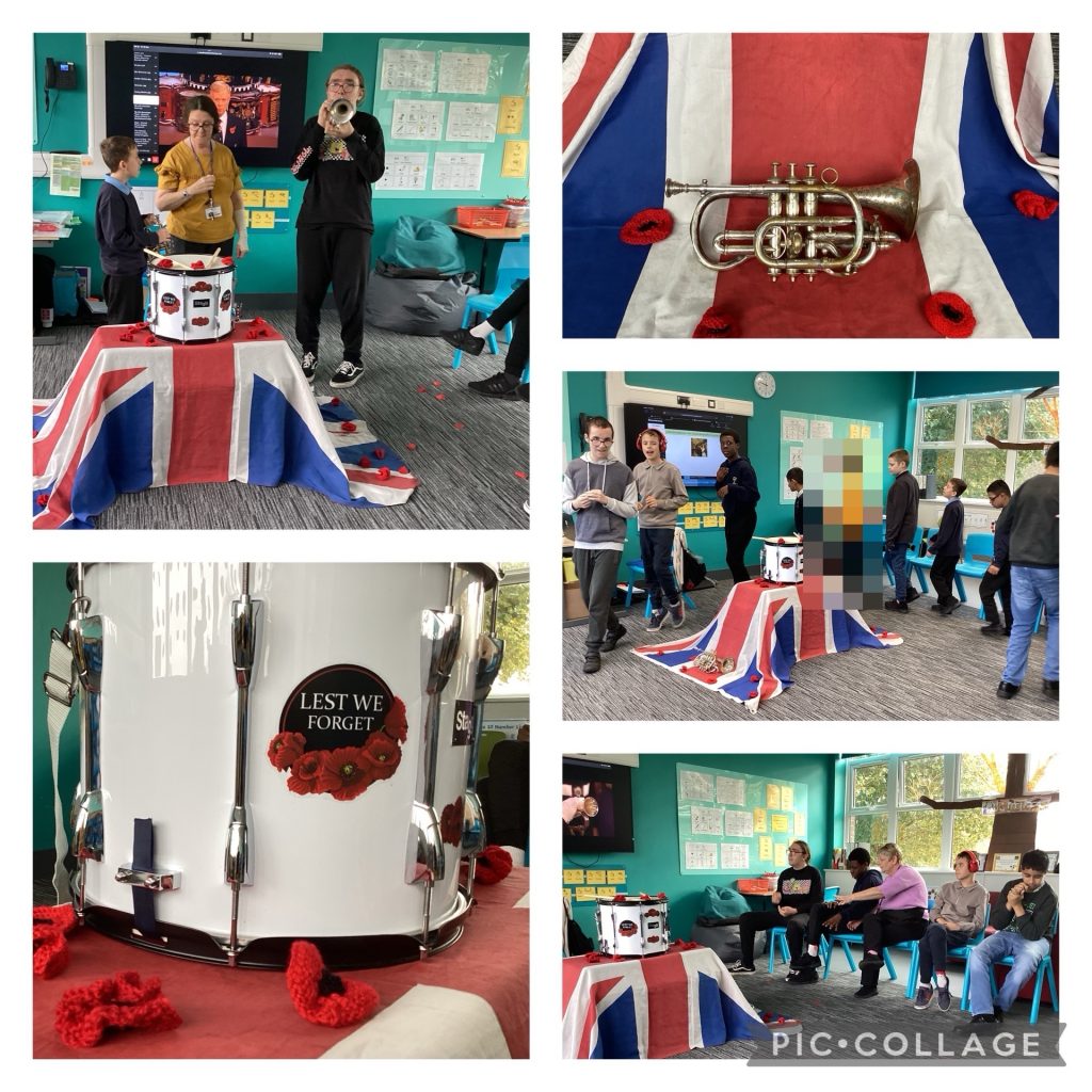 whilst we were paying our respects, we watched this animation to help understand what was happening and why it is remembered. Following on from this, in music on Friday, we marched to the music and played the instruments from a marching band.